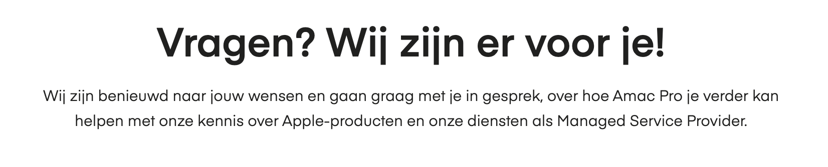 Volledige ondersteuning mkb-klanten door Amac Pro Services en Jamf.